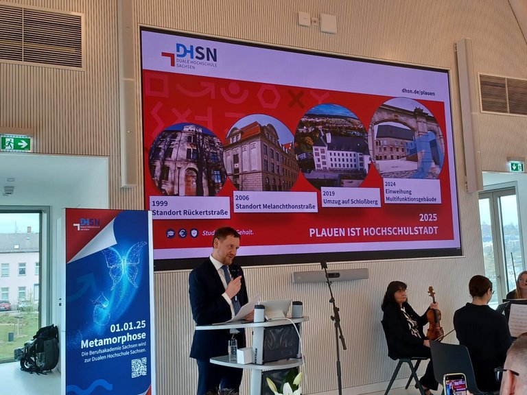 Am gestrigen Montag kam Sachsens Ministerpräsident Michael Kretschmer in den Audimax der Dualen Hochschule Plauen, um der Stadt feierlich die Urkunde zu überreichen, die Plauen zur "Hochschulstadt" werden lässt. "Es ist erfreulich zu sehen, wie aus einer unserer Ideen allmählich Wirklichkeit wird", freut sich Holtschke, der ebenfalls bei der Verleihung der Urkunde anwesend war. Im nächsten Schritt erfolgt dann der Austausch aller 42 Ortseingangsschilder, um einerseits die Bürgerinnen und Bürger, andererseits aber auch die Touristinnen und Touristen darauf aufmerksam zu machen. "Aber noch viel wichtiger ist es, noch mehr junge Menschen aus allen Teilen Deutschlands für ein Studium in Plauen zu begeistern", so der Fraktionsvorsitzende.