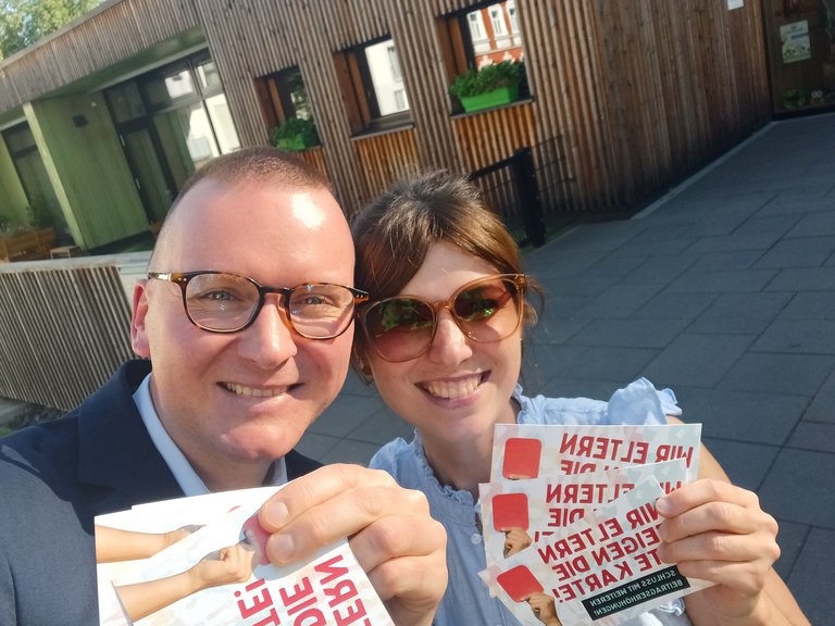 Am vergangenen Freitag war ich gemeinsam mit Franziska in der Plauener Südvorstadt bei der Kita "Pfiffikus" aktiv. Auch hier unterschrieben wieder viele Eltern ihre Postkarte an den Oberbürgermeister, den Sozialbürgermeister und die Stadträte, um gegen die geplante Erhöhung der Elternbeiträge zu protestieren. Wir freuen uns über viel Zuspruch und immer mehr Eltern, die uns anschreiben und Postkarten anfordern. Viele Unterschriften können viel bewegen!